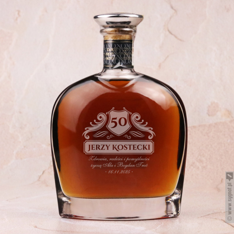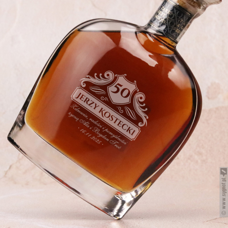 Grawerowana brandy Pliska XO z personalizacją na rocznicę