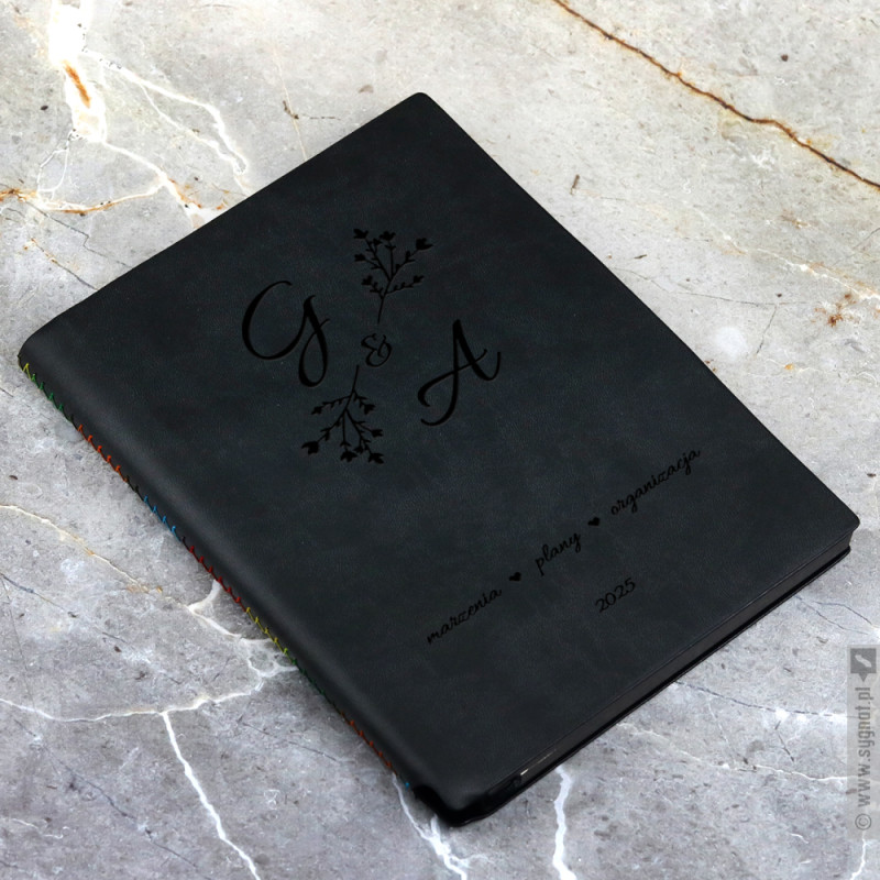 Planer Ślubny - grawerowany notatnik z personalizacją brązowy