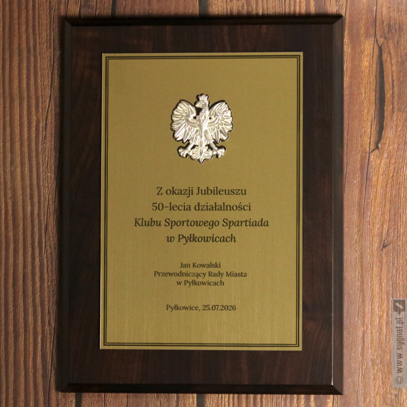 Personalizowany dyplom pamiątkowy w formie tarczy