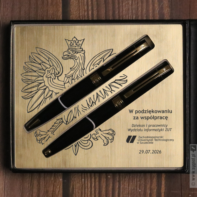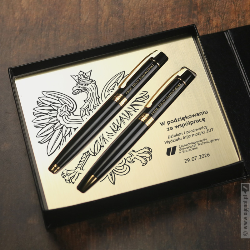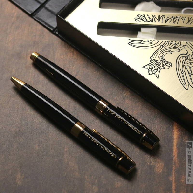 Grawerowany długopis Parker ze złotym wykończeniem w etui ze złotą tabliczką